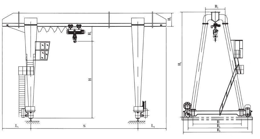 MH型3~16t電動(dòng)葫蘆門式起重機(jī)(箱型式)