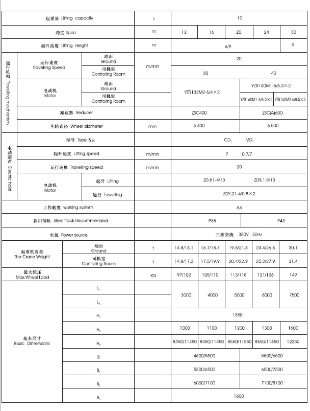 2、 適用起重量3-16噸,適用跨度12-30米,工作環(huán)境-20℃- +40℃內(nèi)。